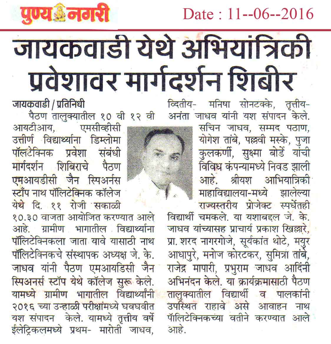 ईमेल @ jkjadhav_kc@rediffmail.com दूरध्वनी क्र: 0240-2352126, मो. : 9870028234.